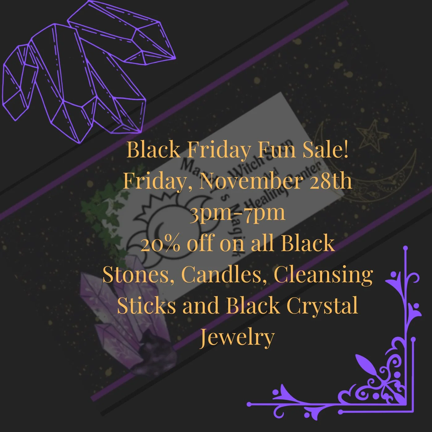 20% off on Black Crystals, Jewelry, Candles, & Cleansing Sticks.