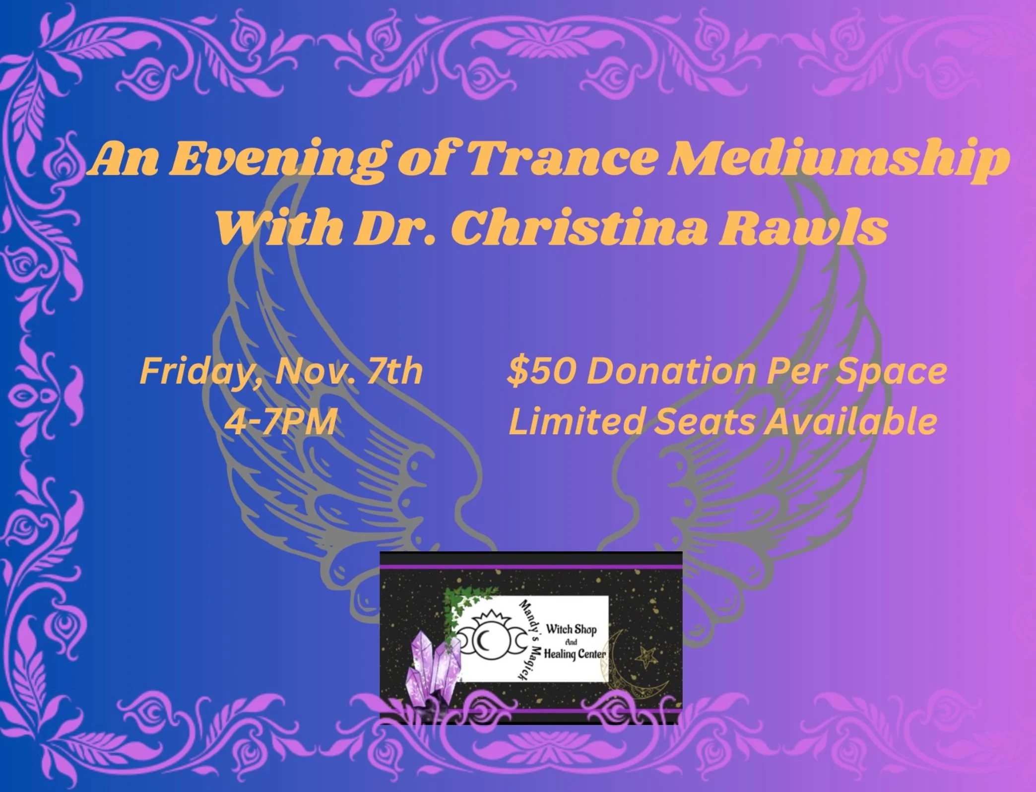 Friday, Nov. 7th - Mediumship Gallery with Dr. Christina @ 5PM