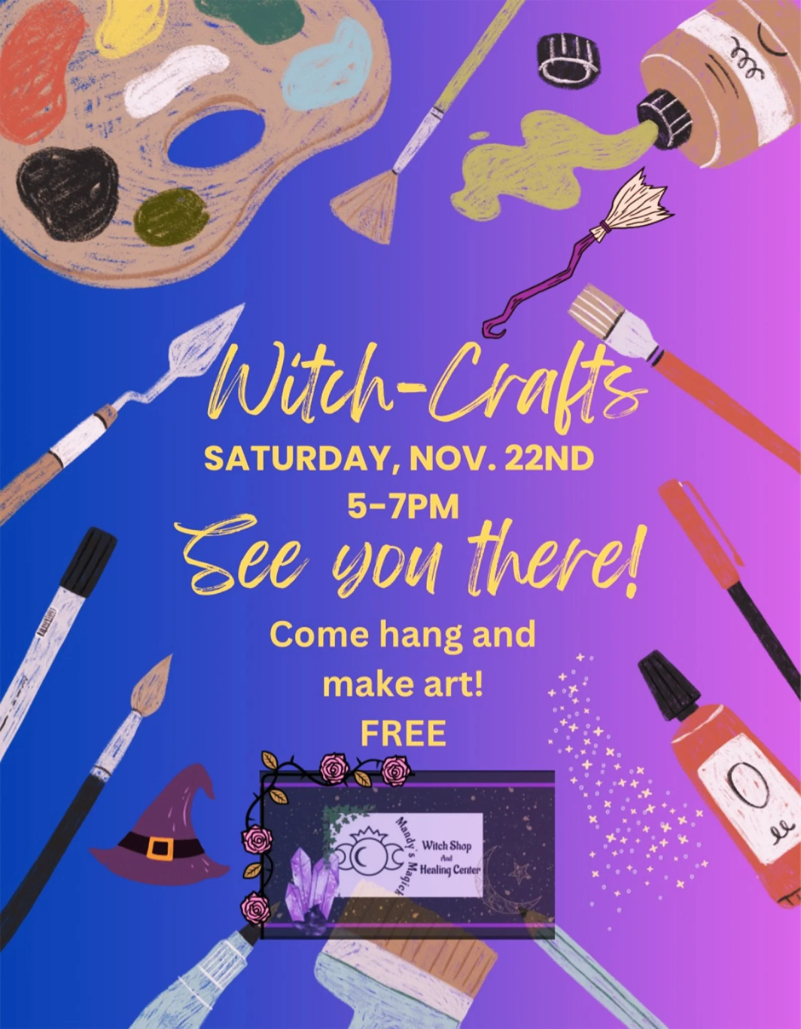 Saturday, Nov. 22nd - Witch-Crafts - Come create ART with us! Free Event @ 5pm