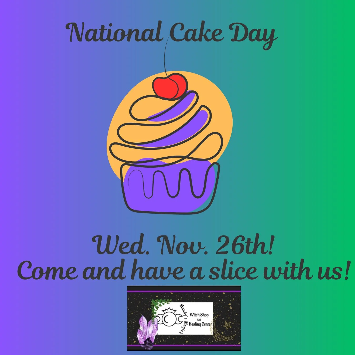Wednesday, Nov. 26th - National Cake Day! Come have a slice with us!
