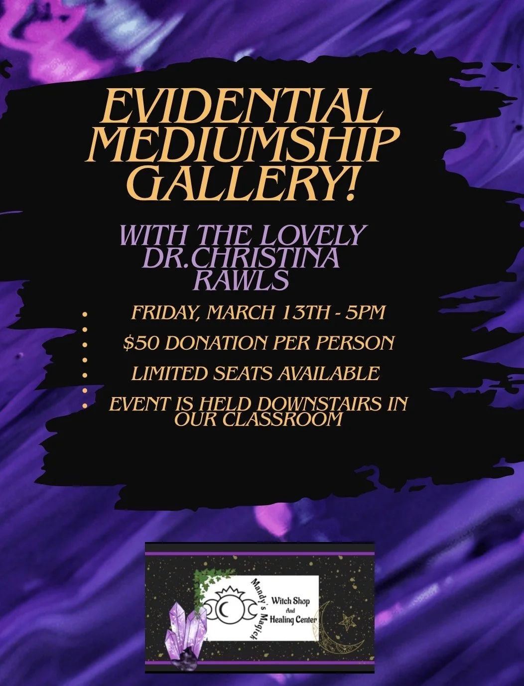 Friday, March 6th - Discounted Mini-Readings with Mandy Magick $44 for a 15 minute reading